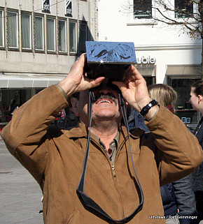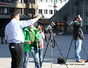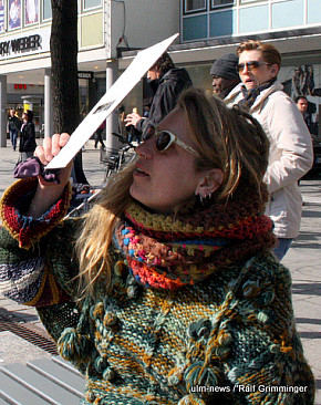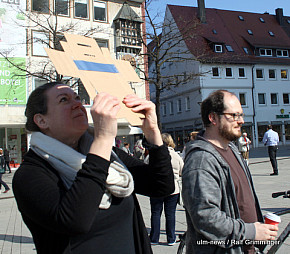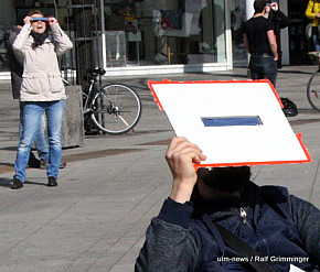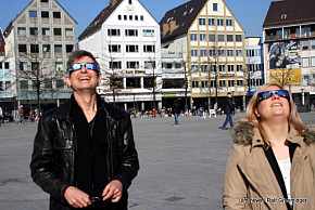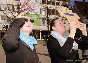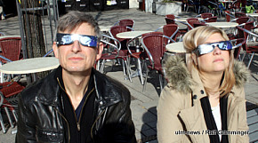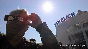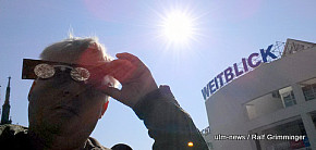 Seltenes Naturschauspiel: In Ulm begann die partielle Sonnenfinsternis um 9.29 Uhr. Der Mond schob sich eine Stunde lang vor die Sonne. Dies konnte man gut beobachten, weil bestes Wetter herrschte - im Gegensatz zur totalen Sonnenfinsternis 1999, die bei Regen und dichter Bewölkung stattfand. Auf die nächste totale Sonnenfinsternis in... ...mehr
