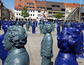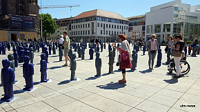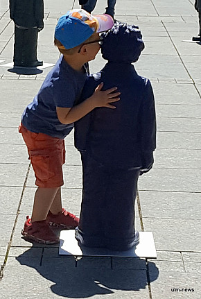 Mensch Albert! So ist die Kunstaktion auf dem Ulmer Münsterplatz betitelt. 500 Albert Einstein -Figuren bevölkern den großen Platz vor dem höchsten Kirchturm der Welt und warten darauf, dass man sich mit ihnen beschäftigt. Das tut fast jede und jeder.   ...mehr
