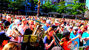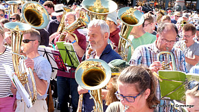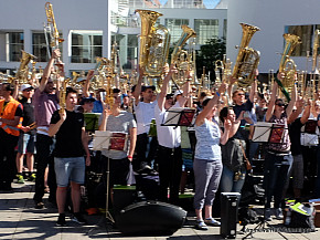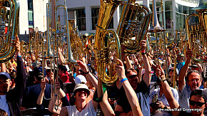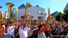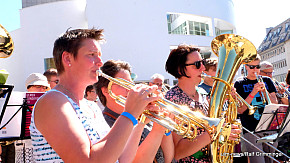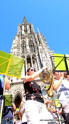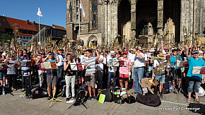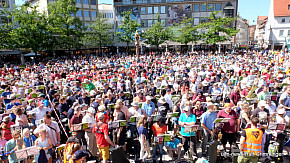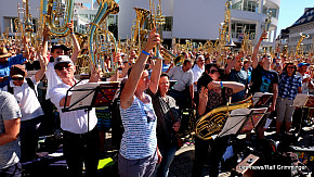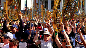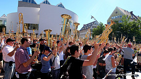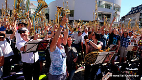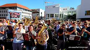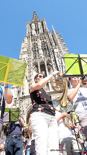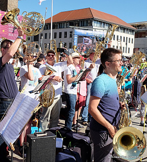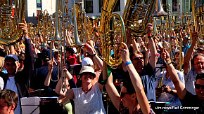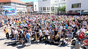 Landesposaunentag endet mit "Gloria sei dir gesungen" - Eindrucksvolles Abschlusskonzert von über 6500 Bläsern auf dem Münsterplatz