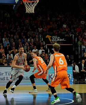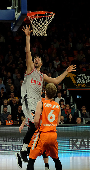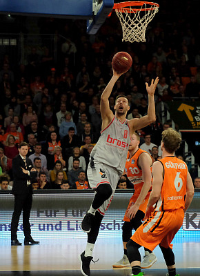 ratiopharm ulm unterlag Brose Bamberg am Sonntagabend in der ausverkauften ratiopharm arena nach einer hervorragenden und mitreißenden ersten Halbzeit (54:47) am Ende deutlich mit 91:100 Punkten. Nach der Pause verloren die Ulmer Basketballer völlig den Faden und gaben spielentscheidend das dritte Viertel mit 11:32 Punkten an die Gäste ab.... ...mehr