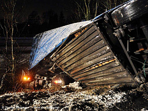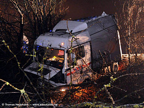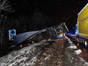 Sattelzug kippt von Fahrbahn