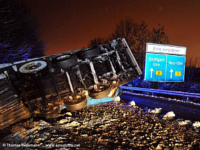 Datum: 27.01.14 Ort: B 30 Veranstaltung: Sattelzug kippt von Fahrbahn