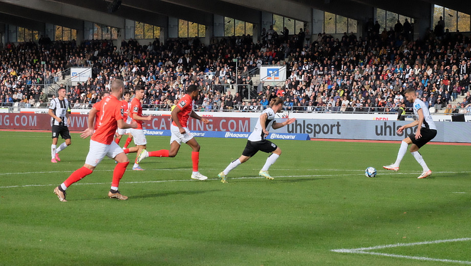 Datum: 28.10.23   Ort: Donaustadion Ulm   Veranstaltung: SSV Ulm 1846 Fußball - Hallescher FC